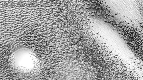 NASA的奥德赛探测器发现了火星上的地下冰,其纬度远低于火星的极地冰盖。图片来源:NASA/JPL-Caltech/ASU