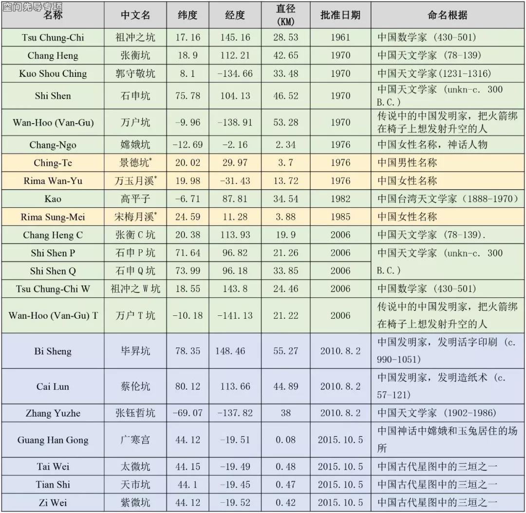 至此,国际天文学联合会(IAU)公布的月球地名中,有27个以中国元素命名的月球地形单元。