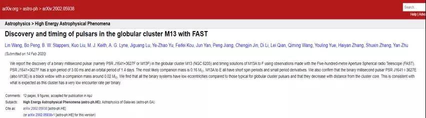 近日,中国科学家宣布利用我国五百米口径球面射电望远镜(FAST;俗称:“天眼”望远镜),在武仙座球状星团(M13)中发现一颗脉冲双星。相关论文即将发表在国际著名天文学刊物《天体物理学报》上。