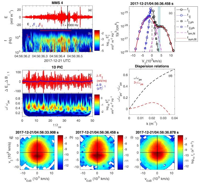 图2.电子双流不稳定性和相关高频电场扰动。