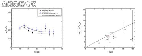 左边图是旋转速度,右边的图是银河系质量分布(红色A17是本工作的结果)
