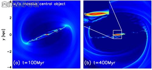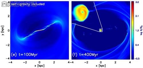 图2.如果星系中心存在足够多的质量,则气体不会直接流入中心,而是形成一个围绕中心的核环
