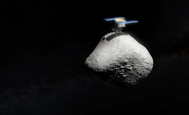 隼鸟2号在小行星1998 KY26表面着陆的艺术想象图。 https://scx1.b-cdn.net/csz/news/800a/2025/can-hayabusa2-touchdow.jpg